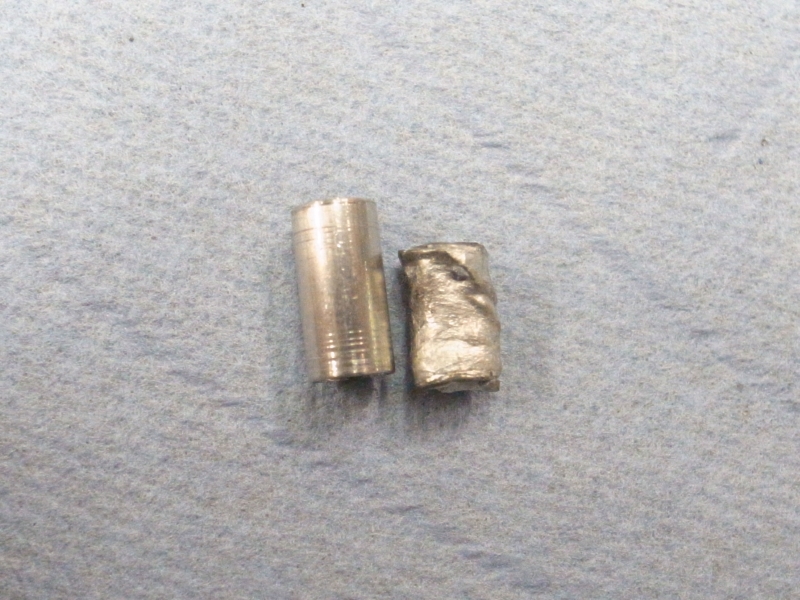 左が使用前のPtシリンダー、右が実験後です。